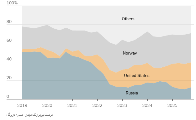 سهم واردات گاز طبیعی اتحادیه اروپا بر اساس منبع